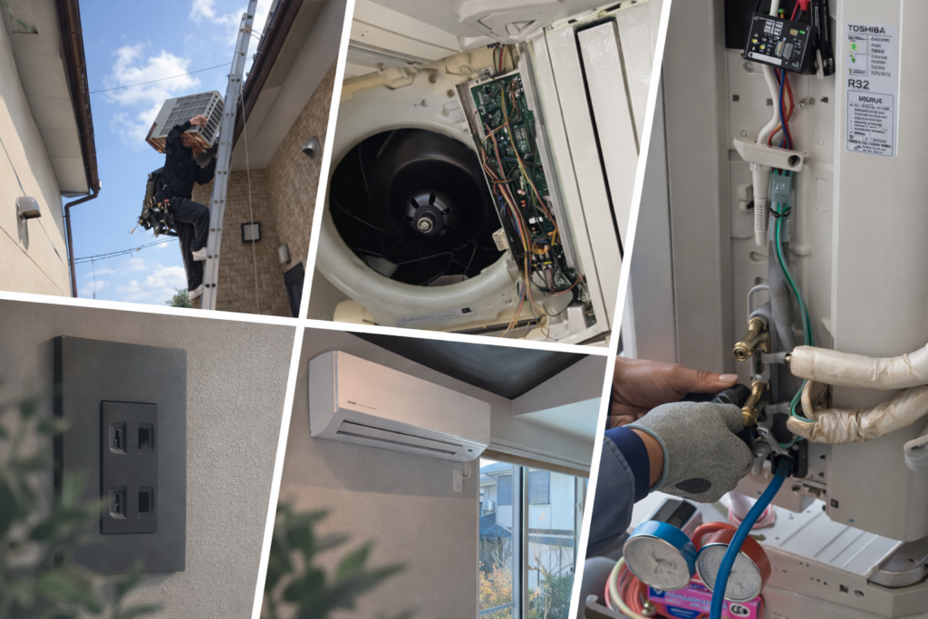 施工内容によってエアコン寿命に差が出る工事のため、柔軟な施工判断・資材・機材が重要になります。